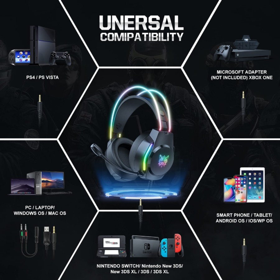 ONIKUMA Headset Gaming stereo telinga kucing - Game E-Sport - headphone gaming - Headphone Keren - Headset unisex