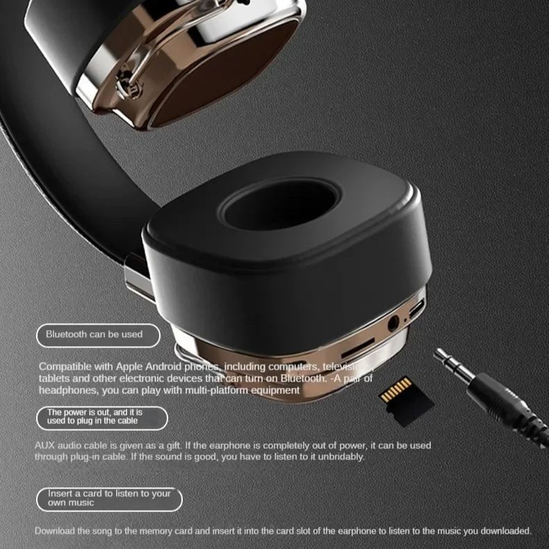 Headphone Over Ear Retro Baru Suara Stereo Bluetooth Nirkabel Bluetooth Headset Lipat Pilihan Gamer