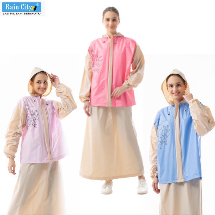 FLASH SALE RAIN CITY JAS HUJAN SETELAN ROK RITZ 69133 NEW COLOR BUNGA PVC PINK