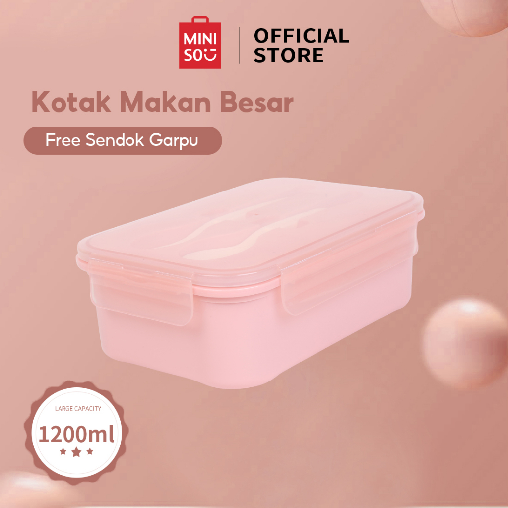 Miniso Lunch Box Set Kotak Makan 1200ml Kotak Bekal Anti tumpah Free Sendok dan Garpu