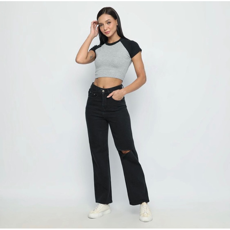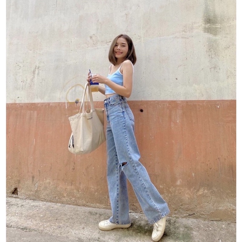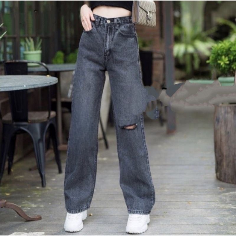 THEGIRLHOUSE - CELANA HIGHWAIST KULOT LOOSE JEANS WANITA SOBEK LUTUT