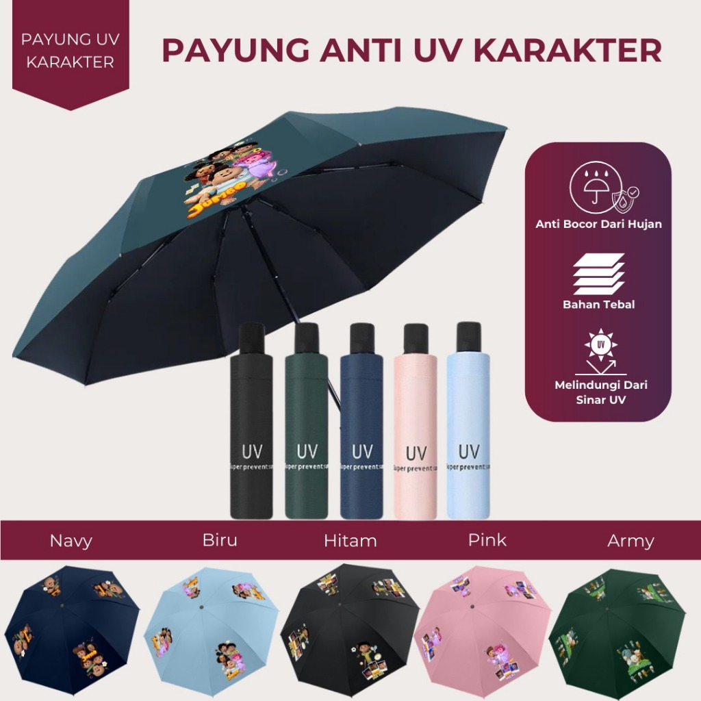 PAYUNG LIPAT ANTI UV MANUAL MOTIF KARAKTER FILM JUMBO / PAYUNG KUAT ANTI SOBEK PAYUNG ANAK KARAKTER LUCU