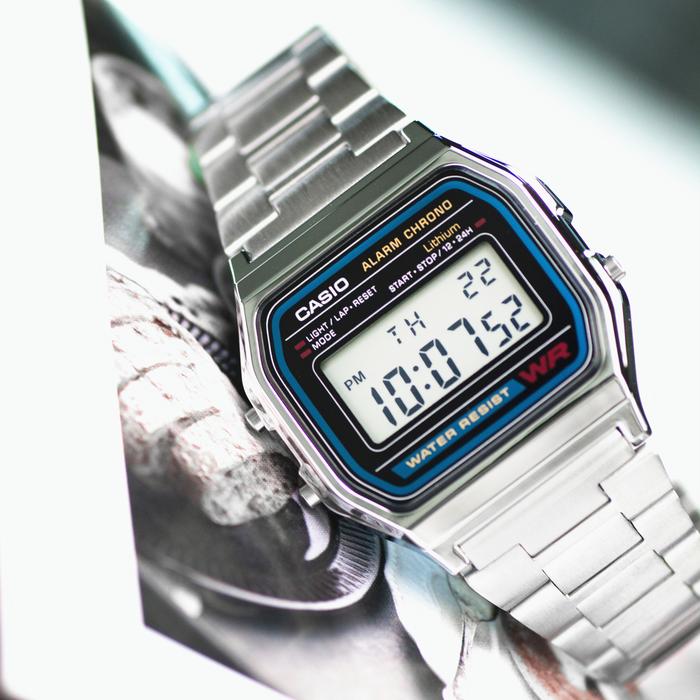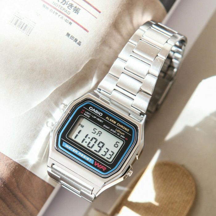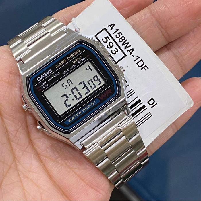 TERLARIS CASIO A158WA1DF JAM TANGAN UNISEX DIGITAL RANTAI SILVER A158WA A158WA1