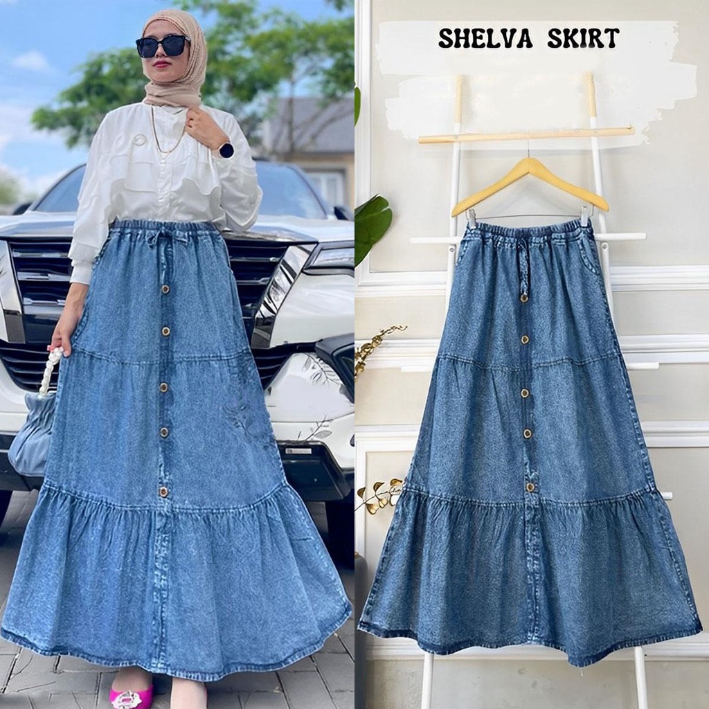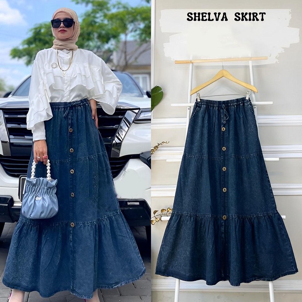 MEVA ROK JEANS REMPEL WANITA // SHELVA SKIRT JEANS WANITA