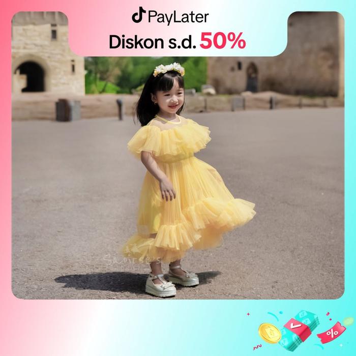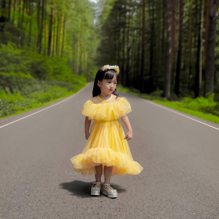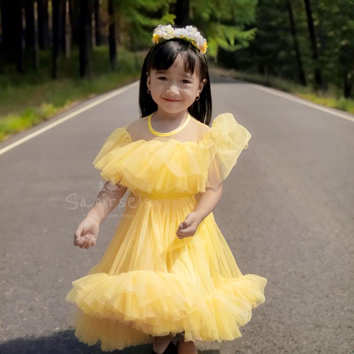 FLASH SALE SAOIRSE'S BELLE DRESS GAUN PRINCESS BELLE ANAK PEREMPUAN 28 TAHUN TULLE ELEGAN MEWAH PESTA BIRTHDAY WEDDING FESTIVAL FASHION TUTU DRESS PENDEK ANAK YELLOW M