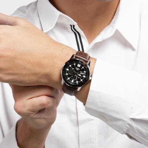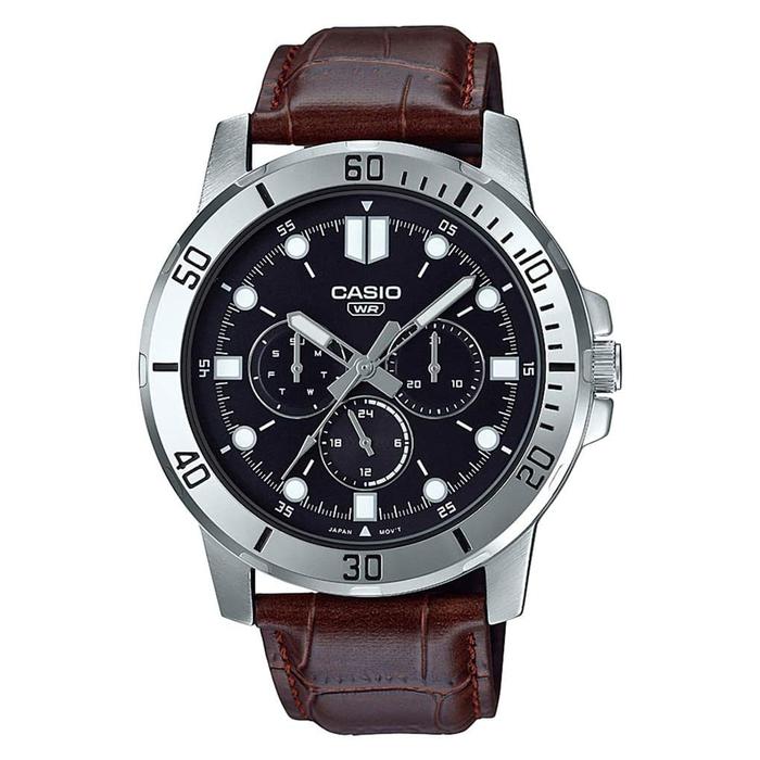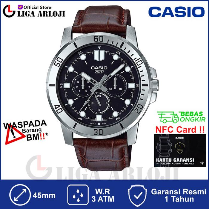TERLARIS CASIO MTPVD3L1EUDF JAM TANGAN PRIA TALI KULIT MTPVD3L