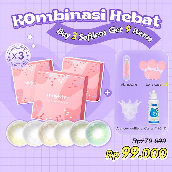 FLASH SALE MAGISTER SOFTLENS 3 PAIRS 14MM QUEEN SERIES MINUS (00800) PAKET KOMPLIT LENSA KONTAK 9 ITEMS 142MM GREY SOFTLENS BROWN SOFLENS MURA
