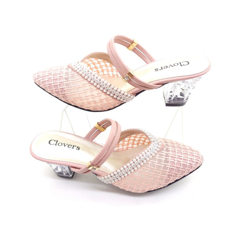 [Mall] CLOVERS SHOES SANDAL PESTA PERNIKAHAN WANITA SANDAL FORMAL BRUKAT SANDAL WISUDA HEELS HAK KACA 5 CM