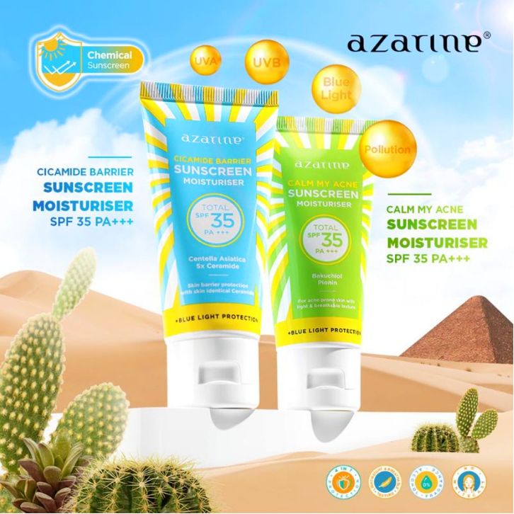 Promo Sunscreen Azarine PRODUK DEFECT Azarine Sunscreen Gel Moisturiser SPF35 PA+++ Calm My Acne XX186 DF