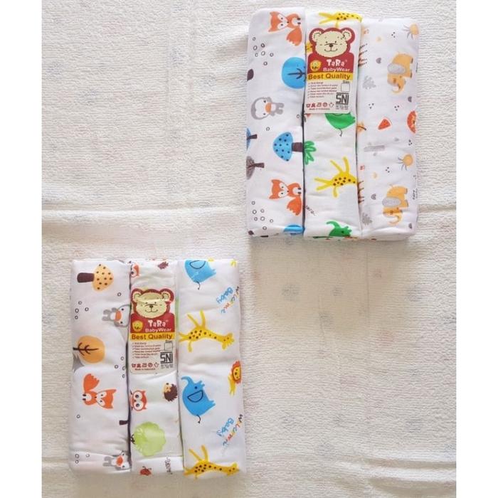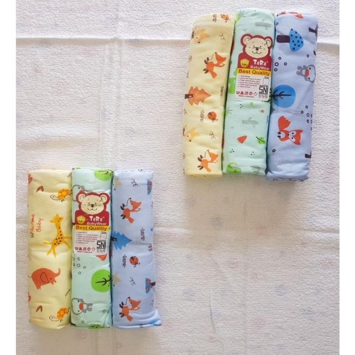 3Pcs || Kain Bedong Anak Bayi (( TARA )) Bahan Kaos || Blanket Fuff Print || Alas Tidur Bayi NewBorn .
