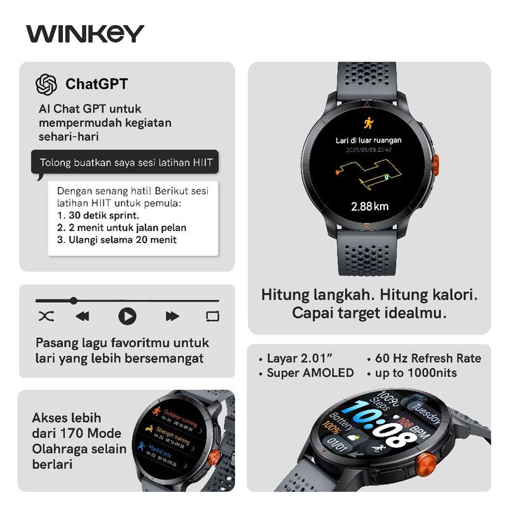 WINKEY Smartwatch NaviGO Jam Tangan Lari Built in GPS Strava AMOLED Bluetooth Call 5ATM Waterproof