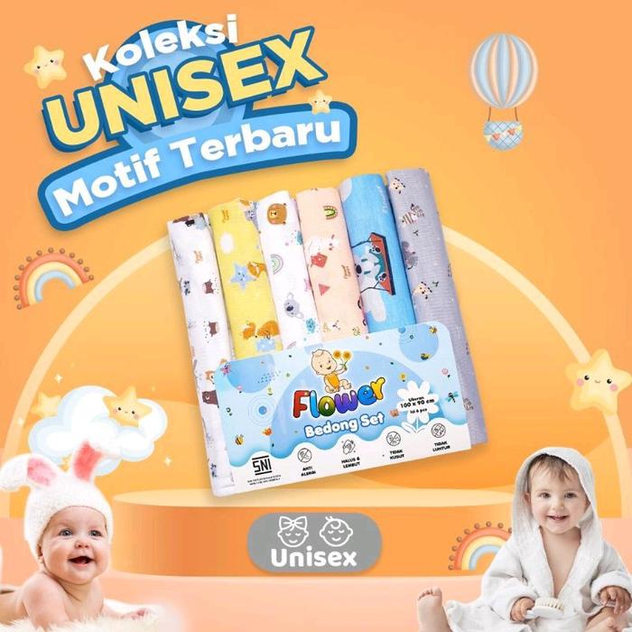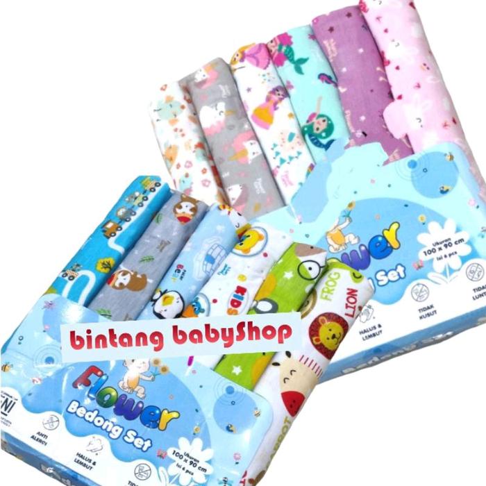 FLOWER 3 Pcs Bedong Bayi Bahan Kaos Full Print Ukuran Besar/Kain Bedong SNI Alas Tidur