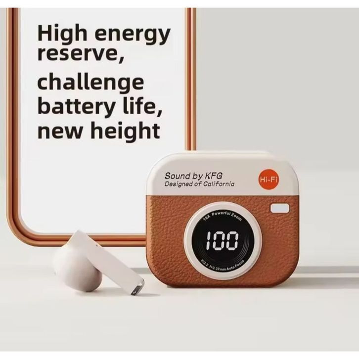 Q86 TWS Kamera Retro Earphone Bluetooth Digital Display Sound Desain Headset Unik HiFi Suara Jernih