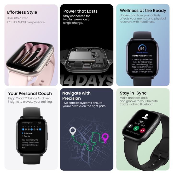 Special EditionAmazfit Active 42mm Smartwatch Lavender Purple 1.75" HD AMOLED Display Ultra-long 14-day Battery Life B