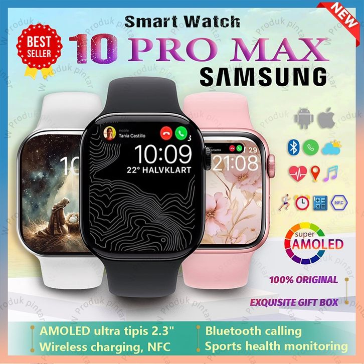 [] Samsung Samrt watch 10 Pro Max Original with 2.3" HD AMOLED Display olahraga Smart Watch GPS NFC Waterproof Bluetooth