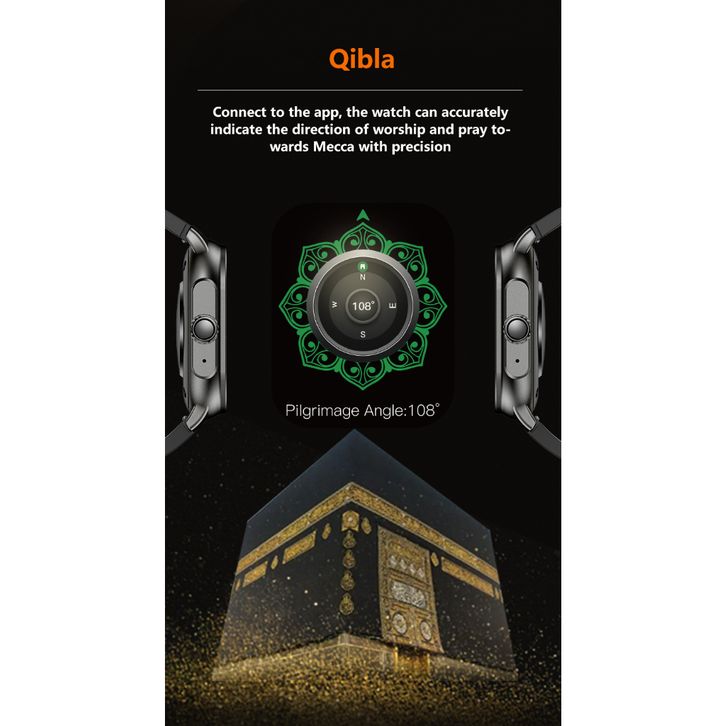 AmazeFan Muslim SmartWatch M77 MAX - Jam Tangan Pintar Pria Wanita dengan Adzan Reminder Al-Qur'an Tasbih Qiblat Hisnul