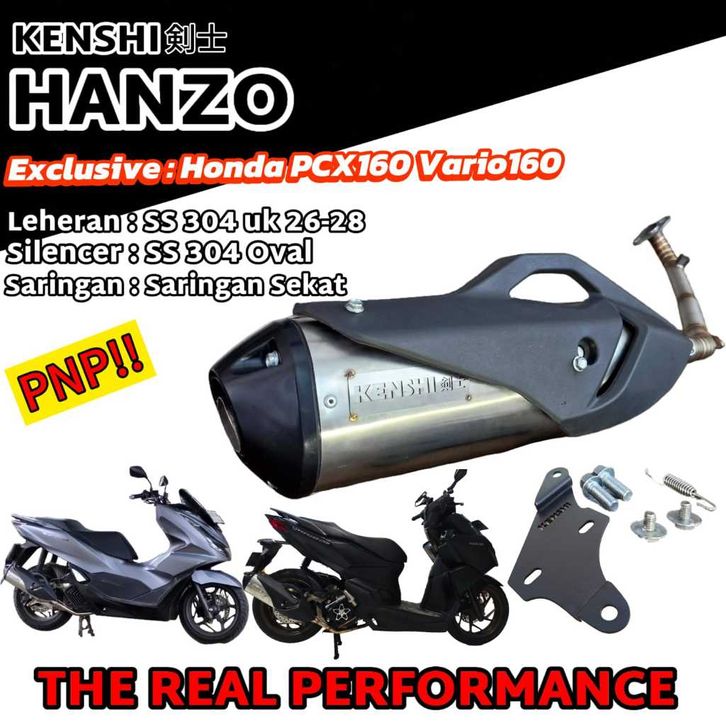 TERLARIS KENSHI HANZO KNALPOT STANDAR RACING HONDA PCX160, VARIO160 PNP FULL STAINLESS