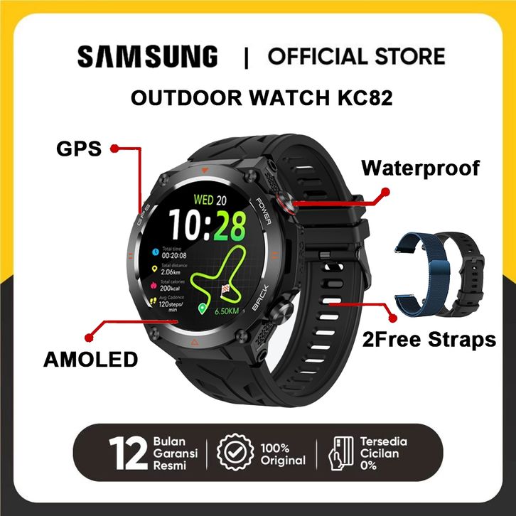 SAMSUNG Smartwatch KC82 Pria GPS Map NFC 1.45 Amoled 5ATM Waterproof Compass jam olahraga 100+ Sport Modes 24H Health Mo