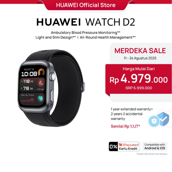 HUAWEI WATCH D2 Smartwatch | 24-hour Ambulatory Blood Pressure Monitoring | Light and Slim Design | All-Round Health Man