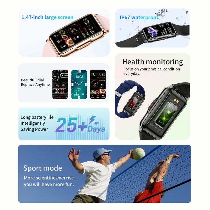 LIGE Jam pintar Pria Dan Wanita 1.47 Inci Sentuh Penuh Pemantauan Detak Jantung Pelacak Kebugaran IP67 Tahan Air Smartwa