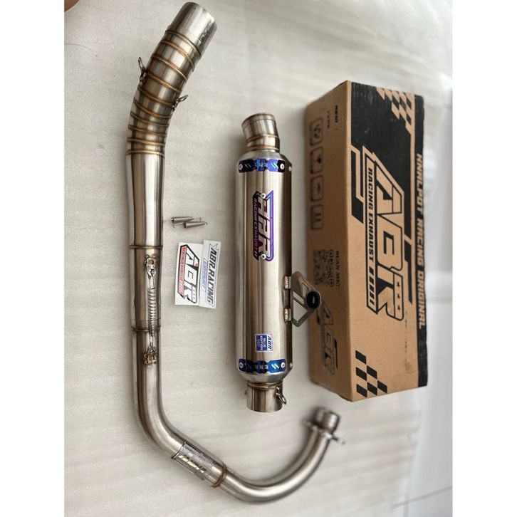 TERLARIS KNALPOT ABR RACING EXHAUST TYPE BULAT JENONG BLUE EDITION GRADE B NEW CB GL MEGAPRO TIGER
