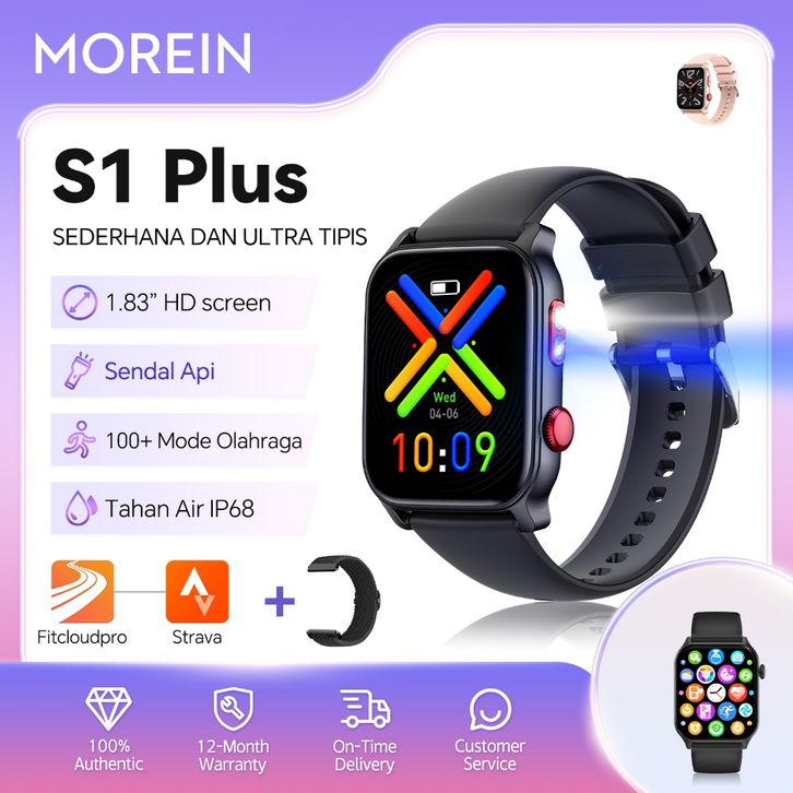 [Lampu Night Vision & UV] Morein Jam Tangan Smartwatch S1 Plus Support Strava Jam Tangan Pria Smartwatch Wanita Elegan