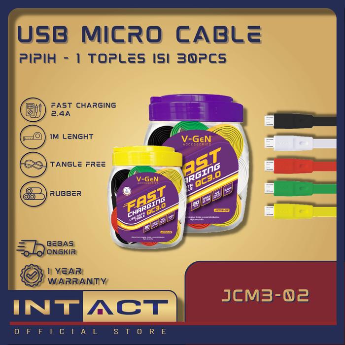 Kabel Data MicroUSB V-GeN JCM3-02 Fast Charging 2.4A 1 Toples 30pcs