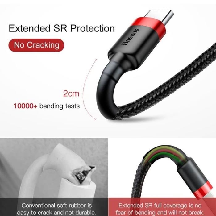 Baseus Cafule Kevlar Kabel Data Charger USB TYPE C 1M 3A Fast Charging Braided Nylon