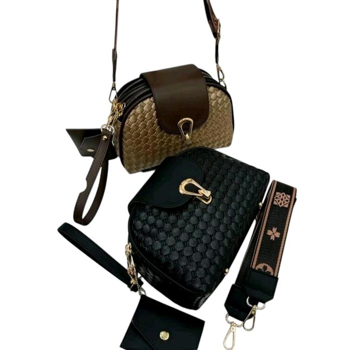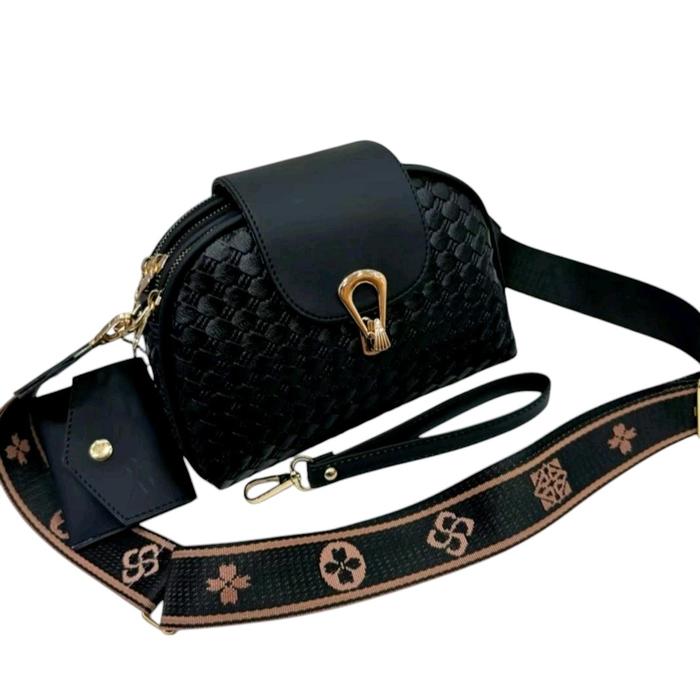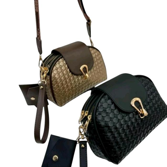 Tas Slempang Wanita 3 Ruang Kunci Kerang Motif Tiker Free Dompet Koin