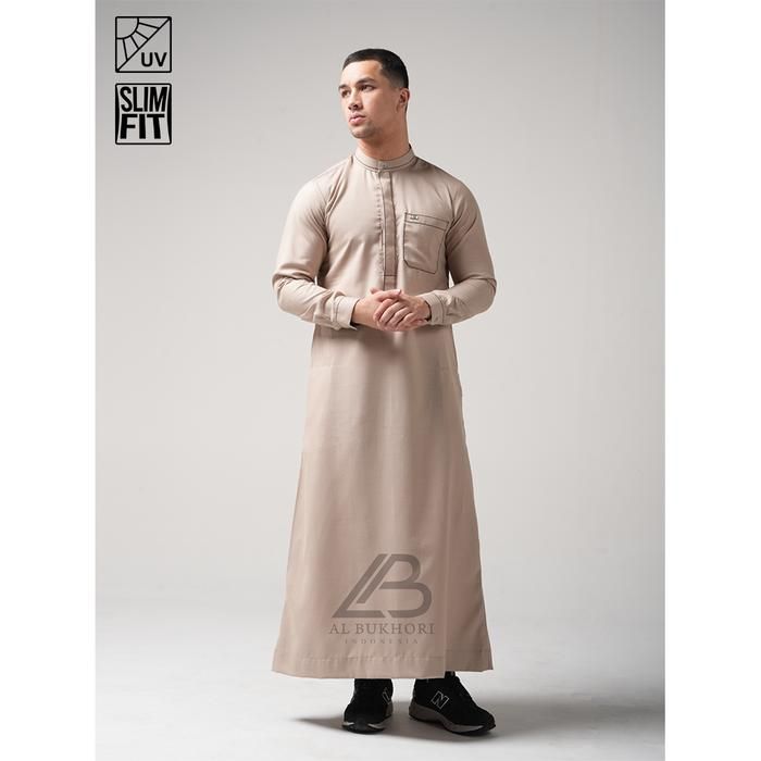 Al Bukhori - Anti UV Jubah Gamis Thobe Slimfit Pria Dewasa Premium Lengan Panjang - Jubah Suhail - Black S BY ORIGINAL