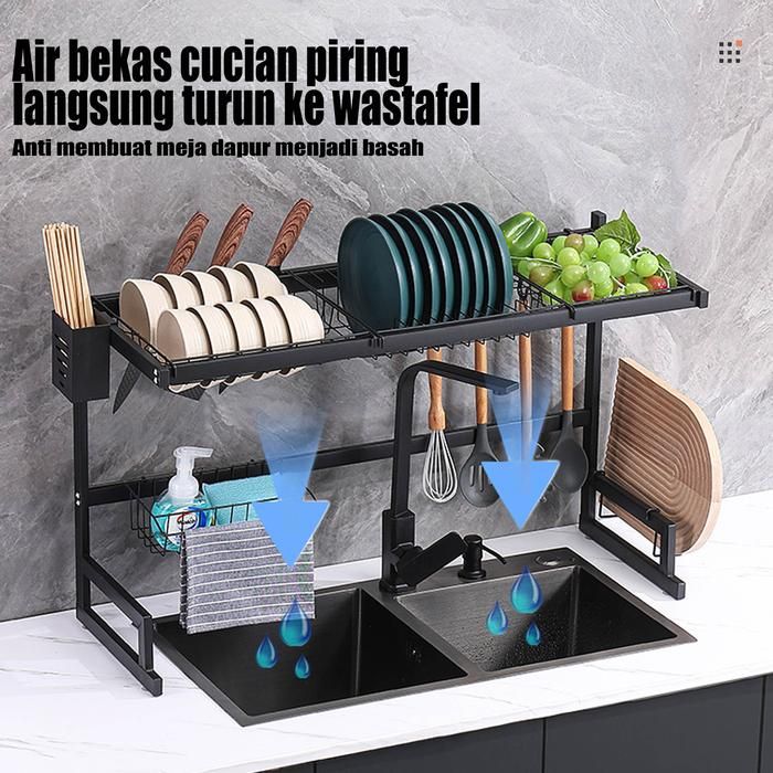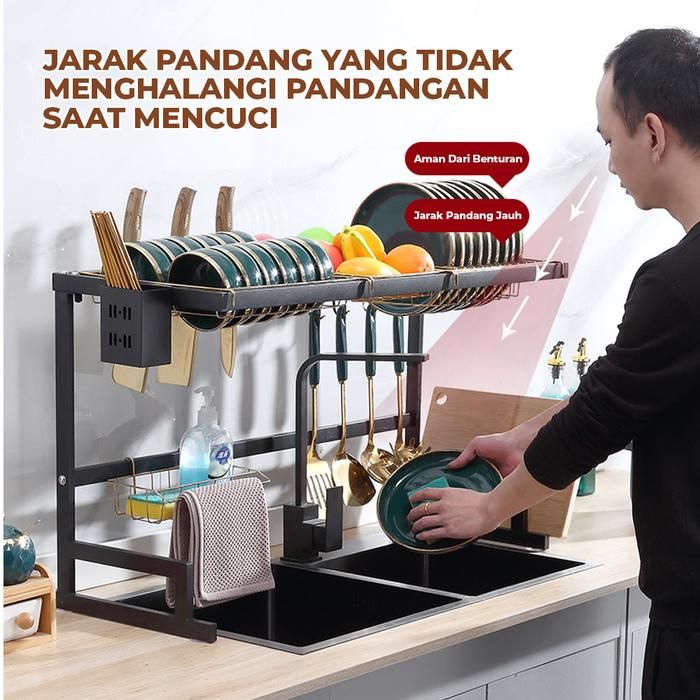 Rak Piring Sink Rack Stainless Steel Kitchen Storage Rack Dish Dryer Kitchen Dish washing antti kaarat Serbaguna Rack D