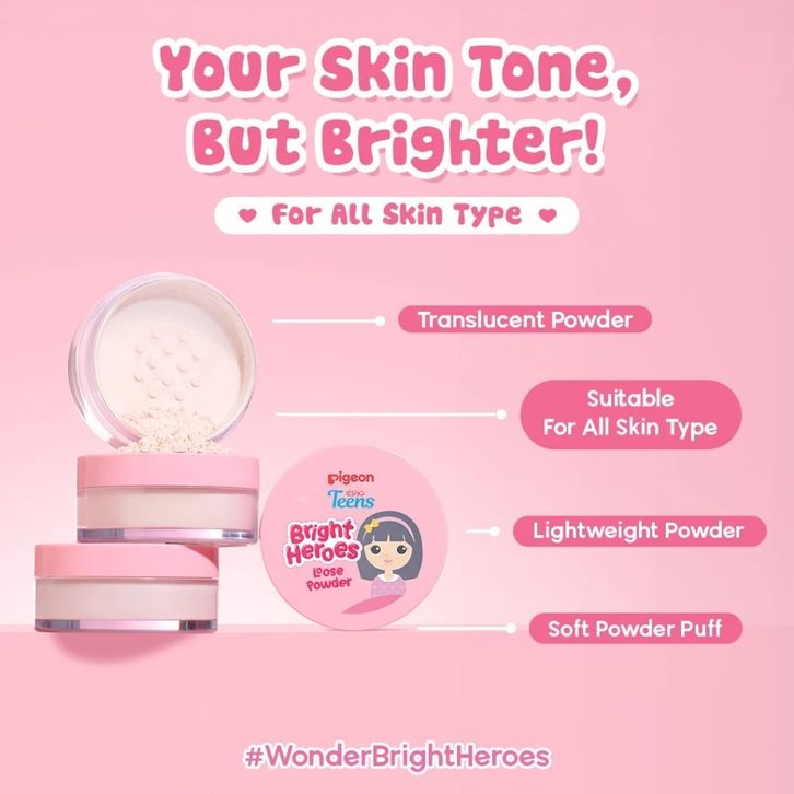 Pigeon Teens Bright Heroes Loose Powder 12gr| Bedak Tabur Remaja |Niacinamide infused / MAGEFY