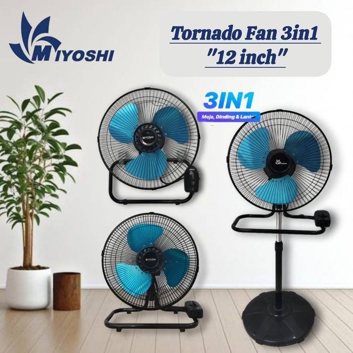 NEW MIYOSHI 12IN 3IN1 TORNADO / KIPAS BERDIRI / KIPAS DUDUK / KIPAS DINDING BY ORIGINAL PRODUCT