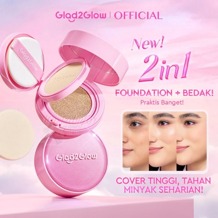 Glad2Glow 2in1 Perfect Pair Cushion Powder Foundation Waterproof Make Up Setting BB Cream / MAGEFY