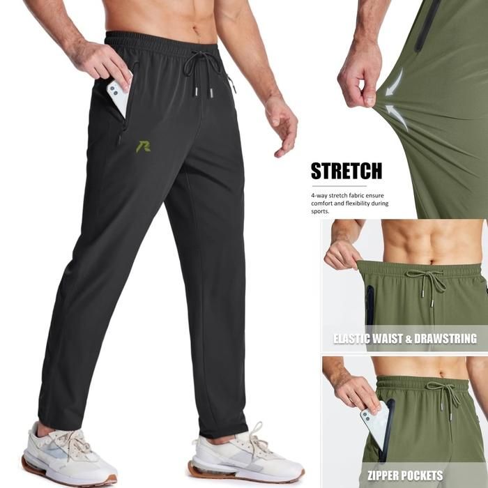 Runoz - Celana Training Panjang Unisex Saku Risleting Celana Cepat Kering Ice Silk Fabric Keren Ringan Bernapas Elastis