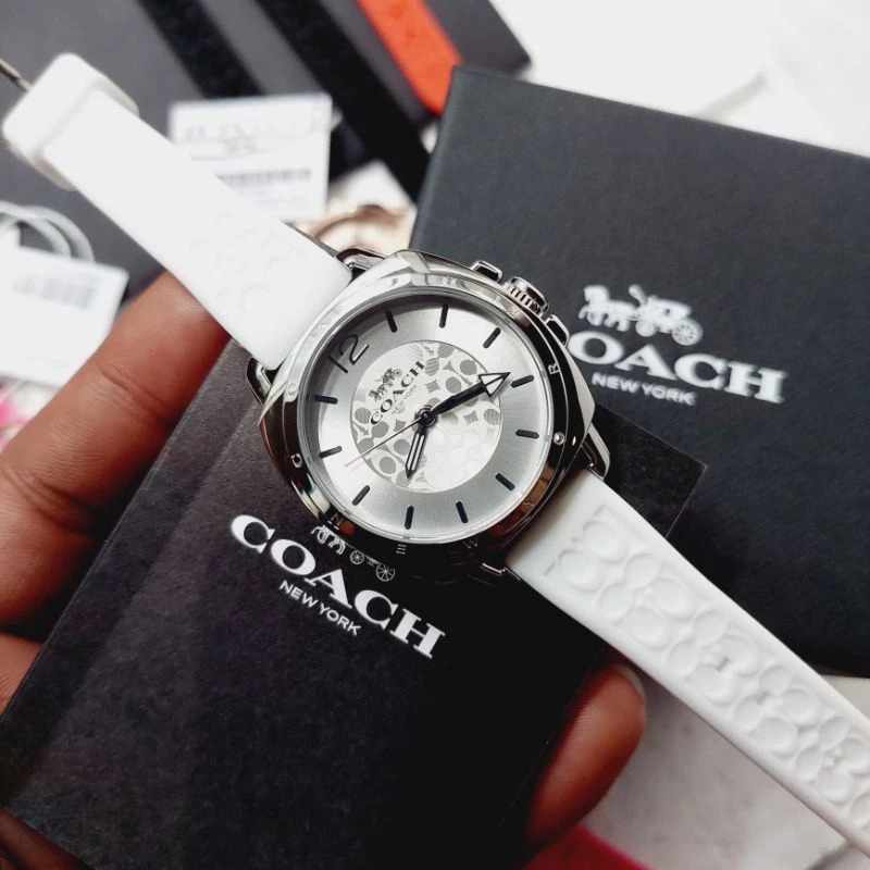 JAM TANGAN WANITA COACH 14502092 SILVER WHITE RUBBER ORIGINAL - FREE ONGKIR