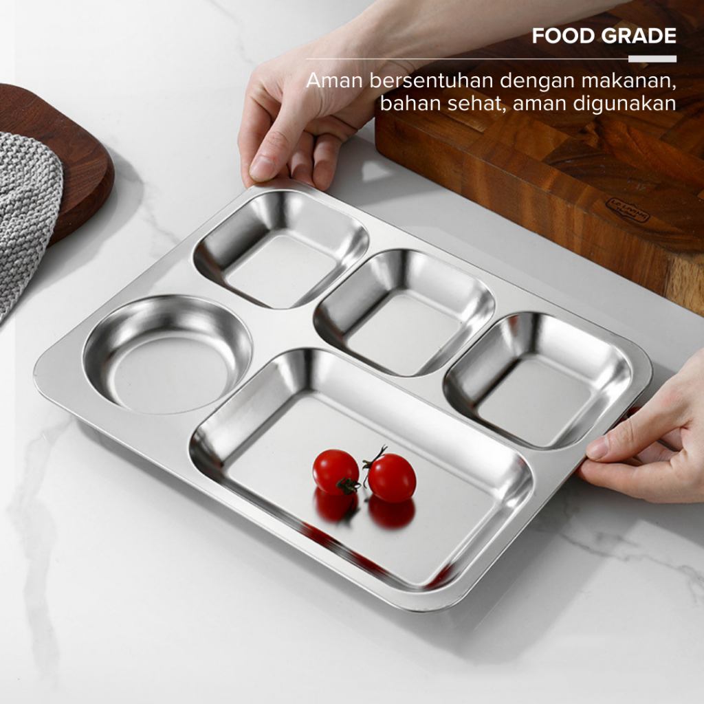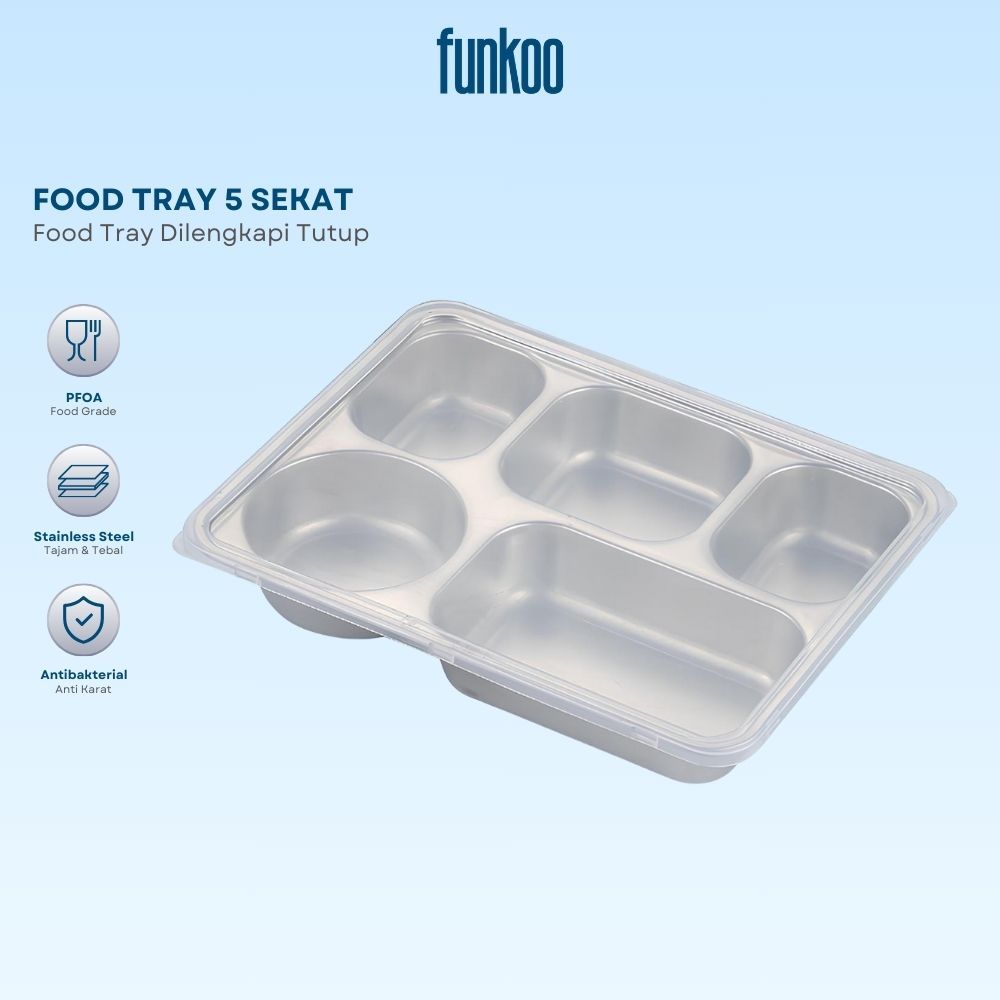Funkoo Food Tray Stainless Sekat 5 + Tutup Lunch Box Stainless Sekat 5 Tray Sekat 5