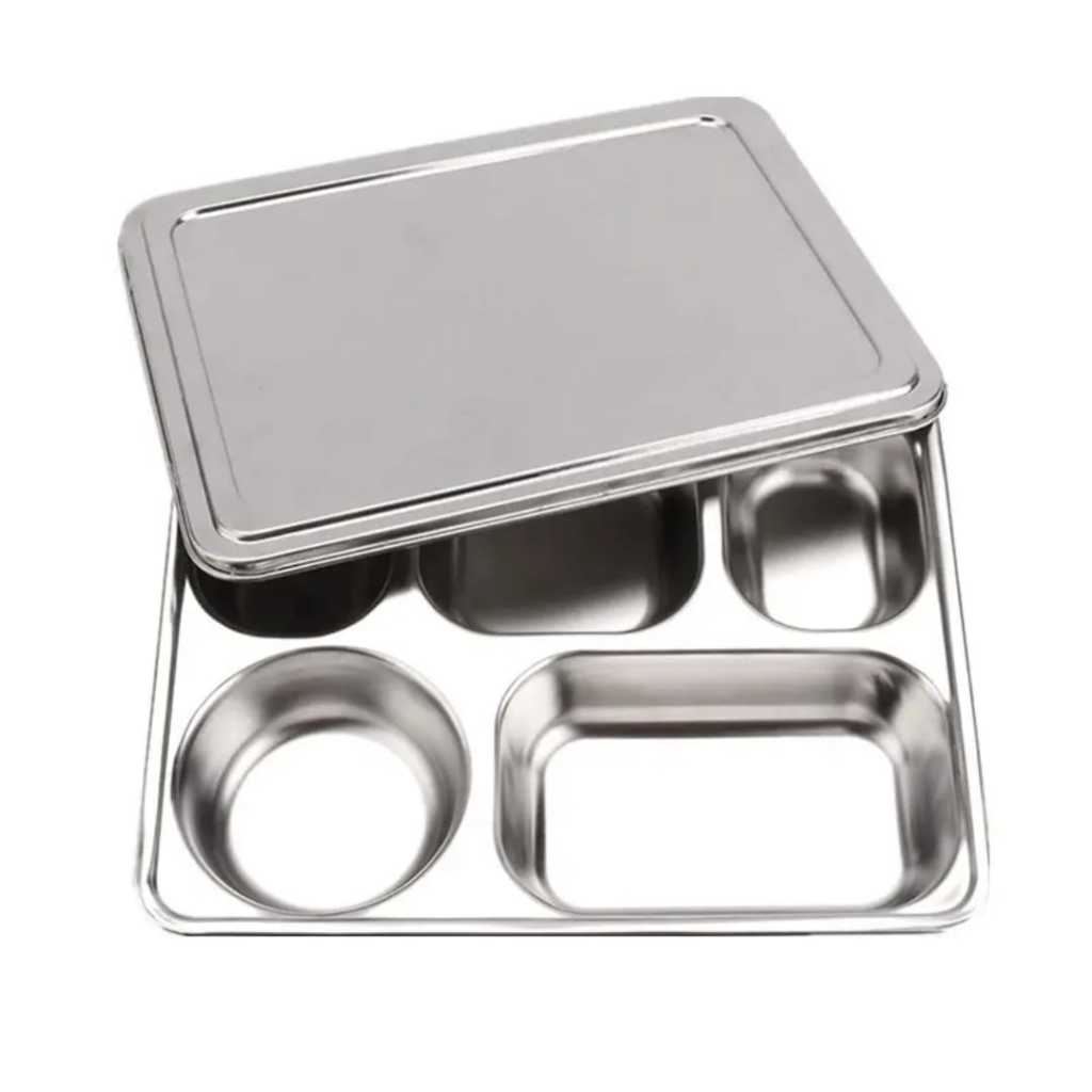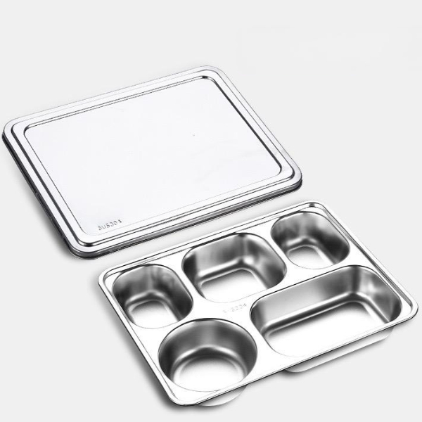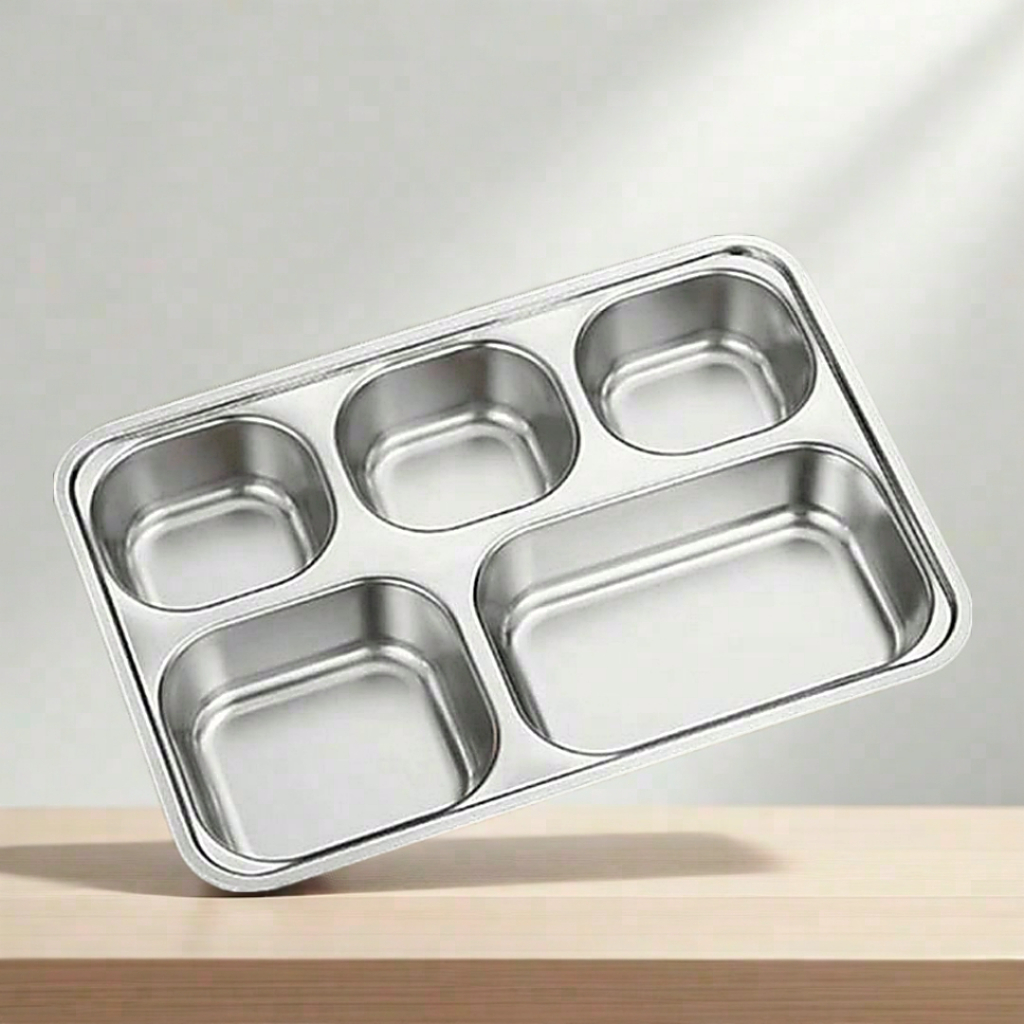 304 Stainless Steel Piring Makanan Cepat Saji Piring Sekat 5 / Tray Canteen Food