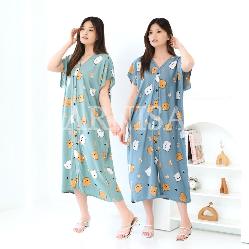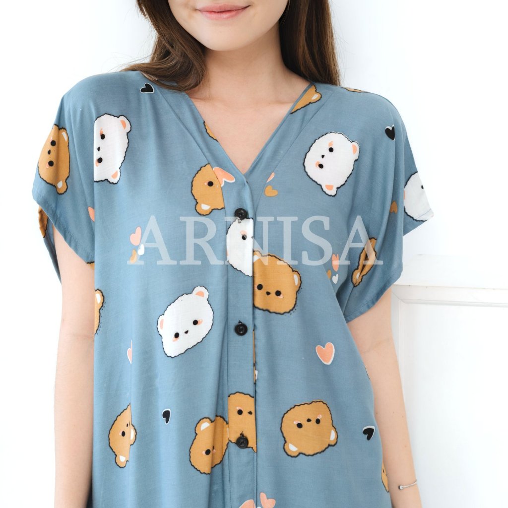 DASTER BUSUI KERAH V KEKININAN ESTETIK GEMES VOL. 4 KARAKTER KARTUN DASTER TIDUR MODEL BALI BAHAN RAYON ARNISA