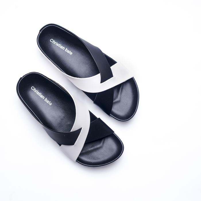 Christian Bale Kaila Sandal flat platform Cewek ban dua silang cantik kombinasi warna sendal selop Wanita casual