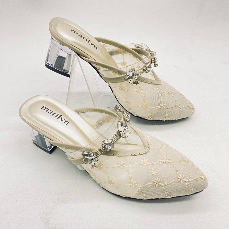 [Mall] MARILYN - SANDAL PESTA WANITA SANDAL MULES | SANDAL WISUDA WANITA BRUKAT | HAK KACA 5CM