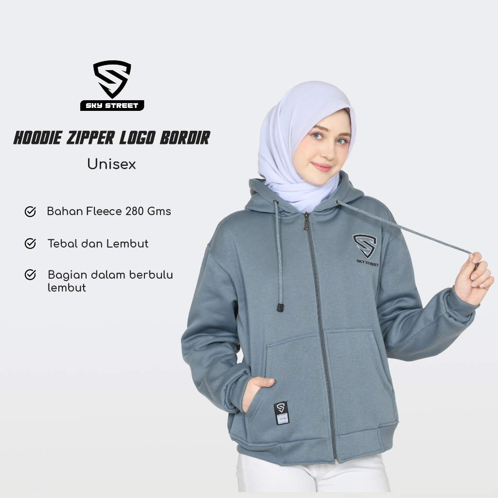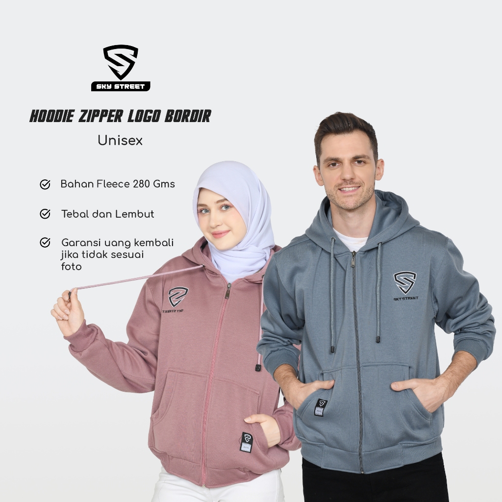 SKYSTREET HOODIE SWEATER ZIPPER JACKET RESLETING LOGO BORDIR 280 GRAMASI TEBAL LEMBUT UNISEX PRIA WANITA FLEECE DISTRO HOODIES SWEATERS HOODIE JUMPER