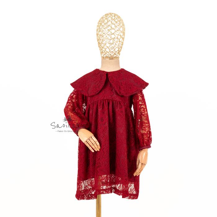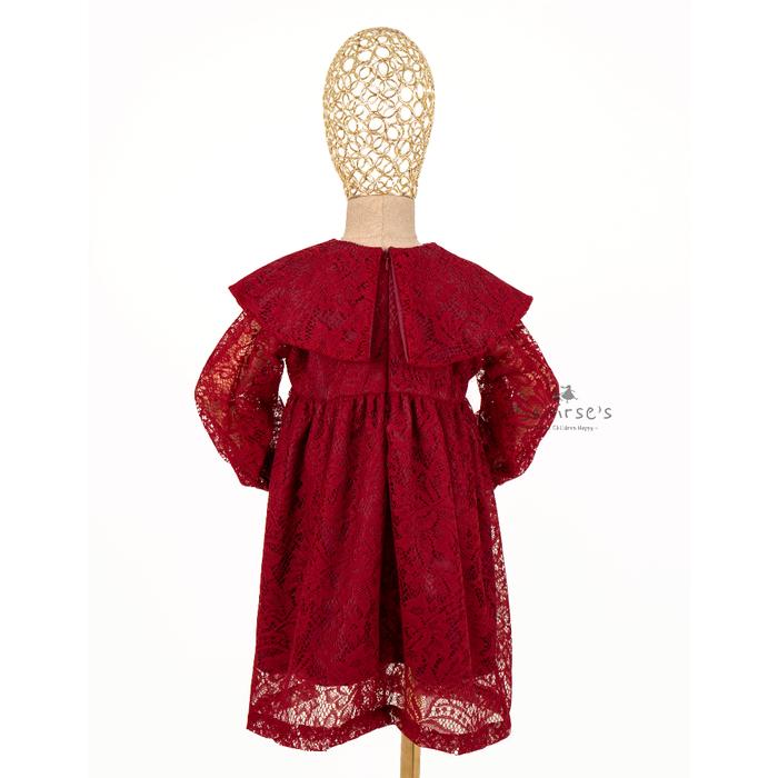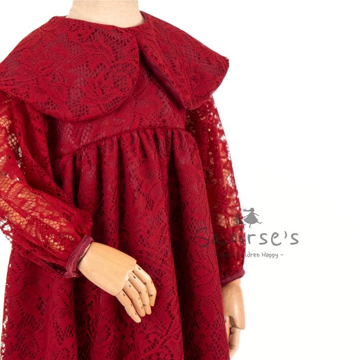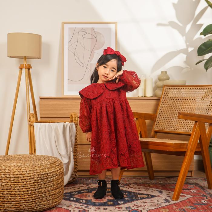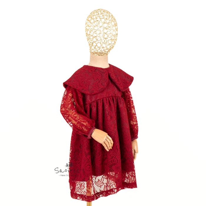 FLASH SALE SAOIRSE'S LAYLA DRESS GAUN BRUKAT ANAK PEREMPUAN MIDI DRESS CANTIK VINTAGE UNTUK PESTA ULANG TAHUN FASHION WEDDING MAROON S