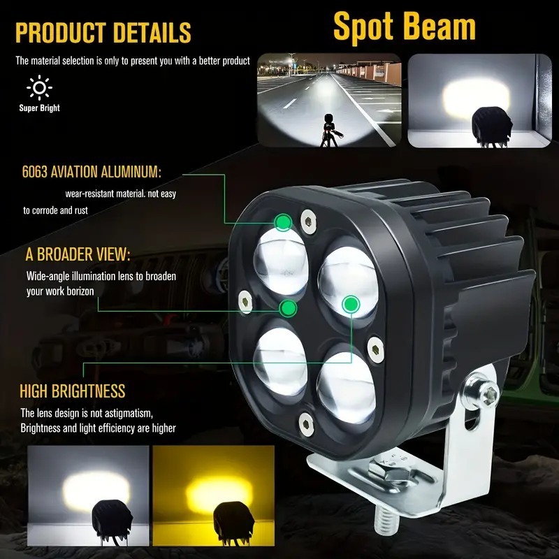 [Ready Stock] 2pcs 40w Kuning Putih Lampu Tembak /Sorot Laser Gun LED 40W Worklight/Lampu Tembak/4 Titik Mata 40 Watt/Motor Mobil Sorot 40Watt