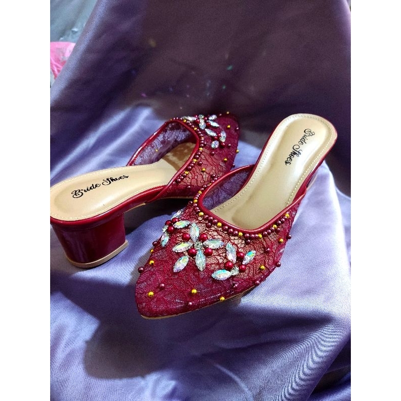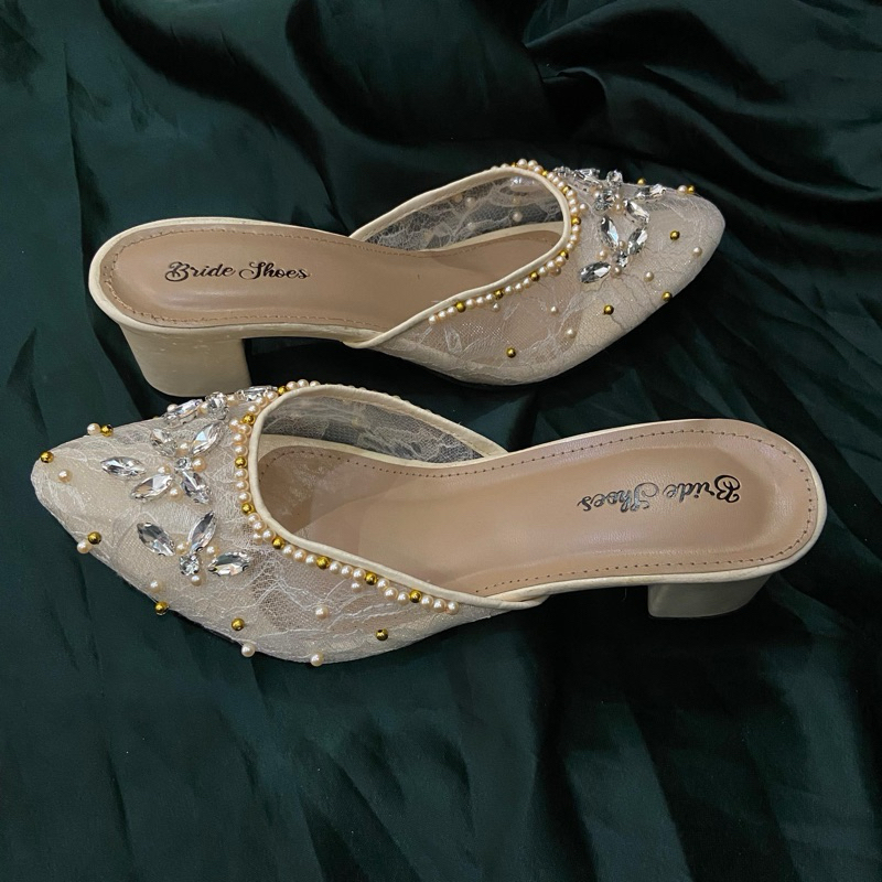 [Mall] BRIDE SHOES 5CM SELOP CANTIK PAYET SLOP MANTEN SLOP WISUDA SANDAL PENGANTIN BROKAT