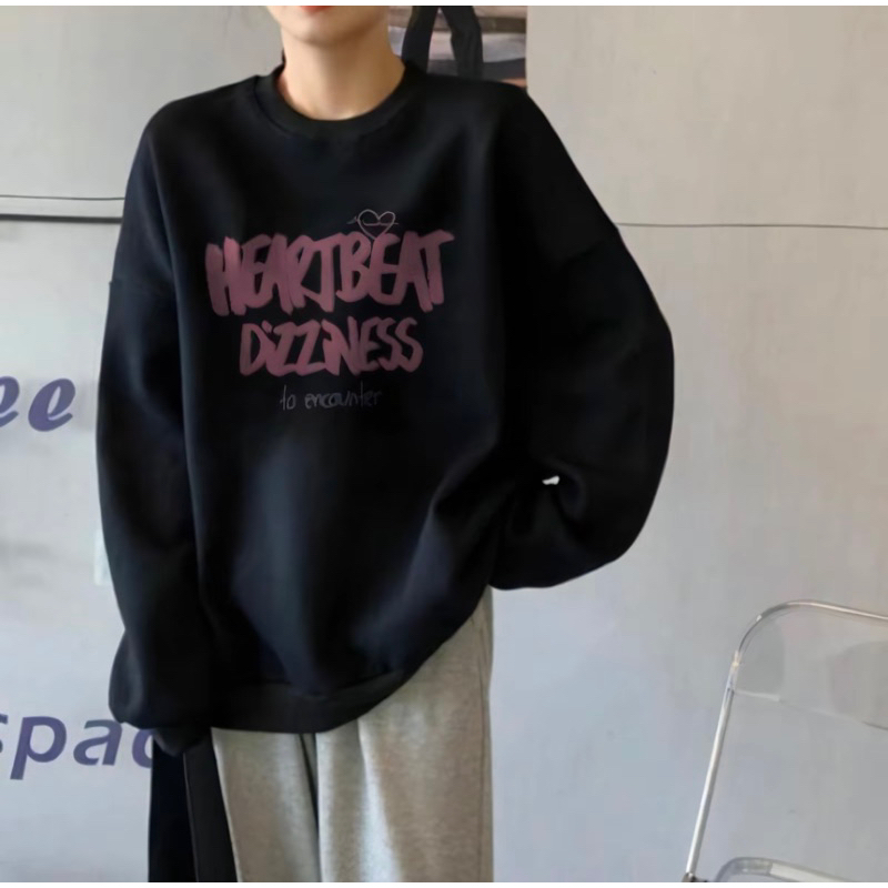 HEART BEAT LOVE SWEATER OBLONG CREWNECK OVERSIZE WANITA