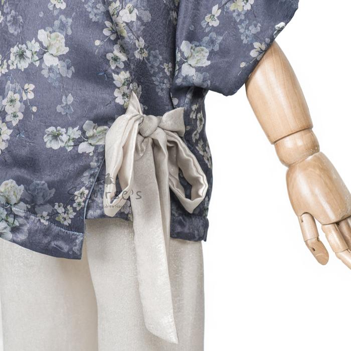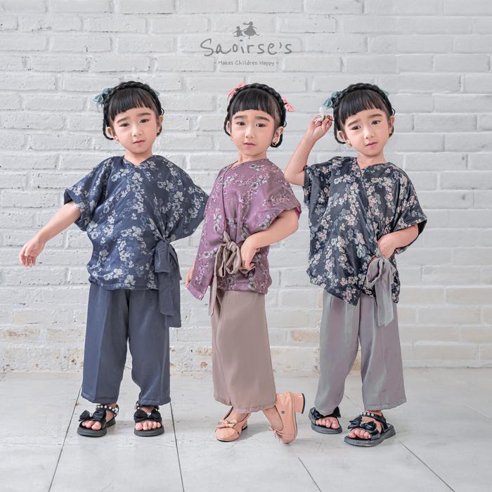 FLASH SALE AIKO SET BY SAOIRSE'S SETELAN KIMONO SATIN CELANA PANJANG ANAK PEREMPUAN BALITA BAJU IMLEK ANAK AIKO FLOWERSDARK BLUE S