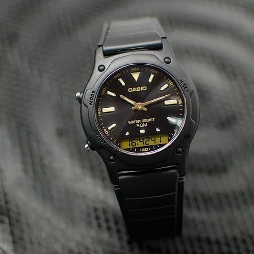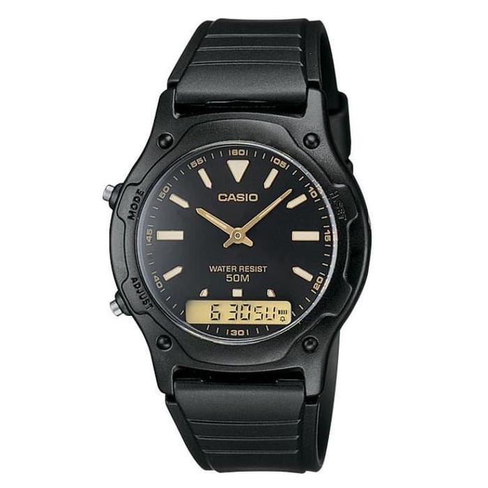 TERLARIS CASIO AW49HE1AVDF JAM TANGAN PRIA DOUBLE TIME HITAM AW49HE AW49HE1A AW 49HE 1AVDF