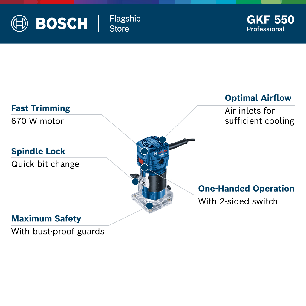 Mesin Router Genggam BOSCH 1 x 1/4" GKF 550 / Palm Router - 06016A00K0