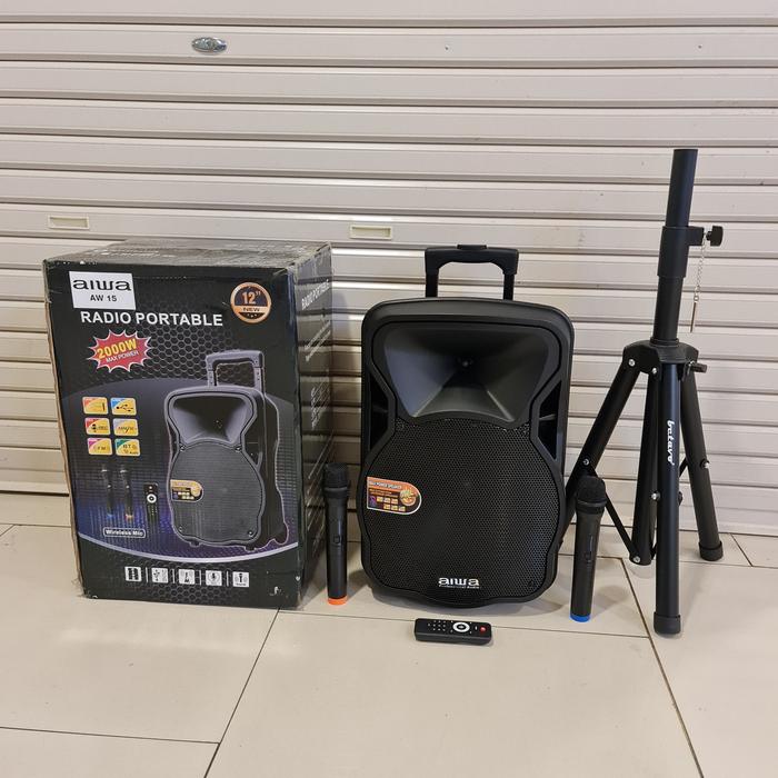 TERLARIS SPEAKER PORTABLE AIWA 12 INCH ISI 2 MIC WIRELLES PEGANG2
